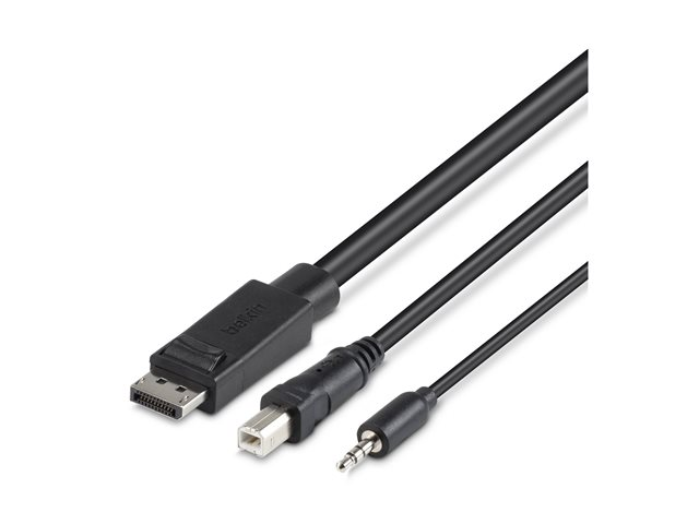Belkin Secure KVM Combo Cable - Tastatur / video / mus / lydkabel - TAA-samsvar - USB, minijakk, DisplayPort (hann) til mini-phone stereo 3.5 mm, USB-type B, DisplayPort (hann) - 3.04 m - svart