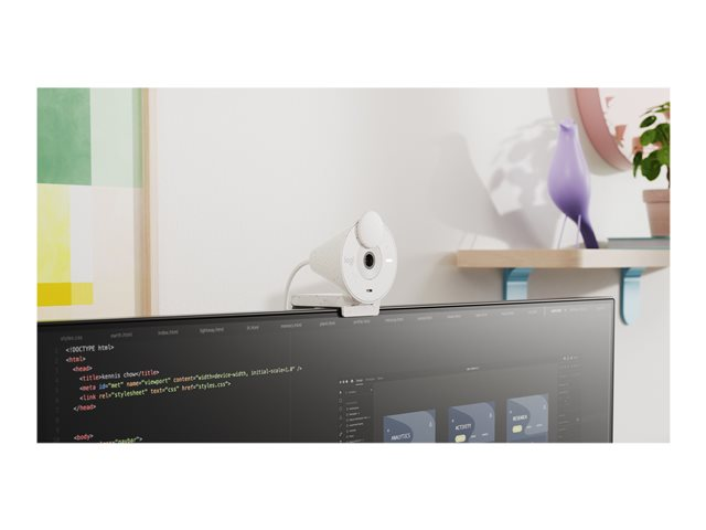Si hallo til bedre videomøter. Sett Brio 300 i din beste vinkel for en øye-til-øye-tilkobling. Se naturlig ut takket være 1080p oppløsning og automatisk lyskorreksjon for situasjoner med dårlig lys. En støydempende mikrofon undertrykker bakgrunnsstøy slik at andre kan høre deg tydelig. Spinn den brukervennlige personvernlukkeren for å dekke objektivet mellom samtaler. Brio 300 er sertifisert for Microsoft Teams, Google Meet og Zoom, slik at du kan ha møter uten problemer. Tilfør personlighet til arbeidsplassen din med en moderne form og en unik prikkete design laget av minst 48 % resirkulert plast.