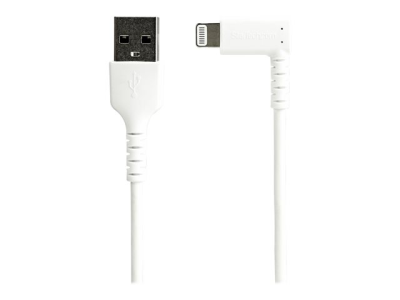 StarTech.com 6ft (2m) Durable USB A to Lightning Cable, White 90° Right Angled Heavy Duty Rugged Aramid Fiber USB Type A to Lightning Charging/Sync Cord, Apple MFi Certified, iPhone 12 Pro - iPhone 7/8/11/11 Pro - Lightning-kabel - Lightning hann vinklet til USB hann - 2 m - dobbeltisolert - hvit