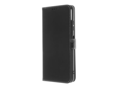 Insmat - Lommebok for mobiltelefon - ekte skinn, termoplast-polyuretan (TPU), polyuretanpolstring - svart, galvanisert bronsering - for Samsung Galaxy A22 5G 650-2974