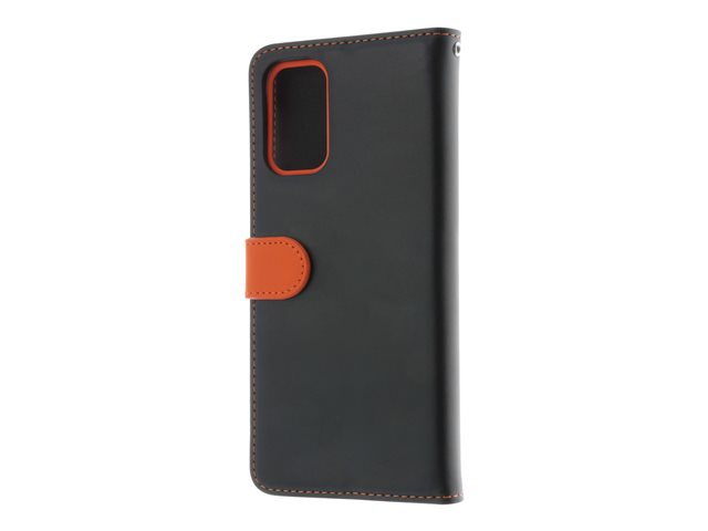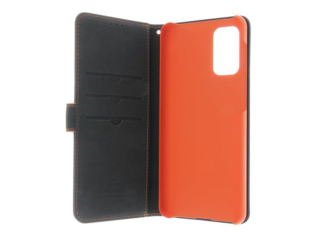 Insmat - Lommebok for mobiltelefon - lær, kartong+papir+aluminiumsfolie - svart, oransje - for Samsung Galaxy A32 5G 650-2970