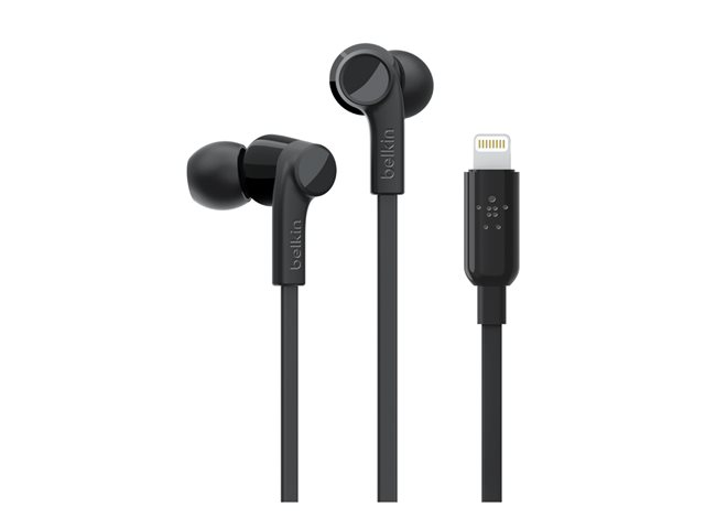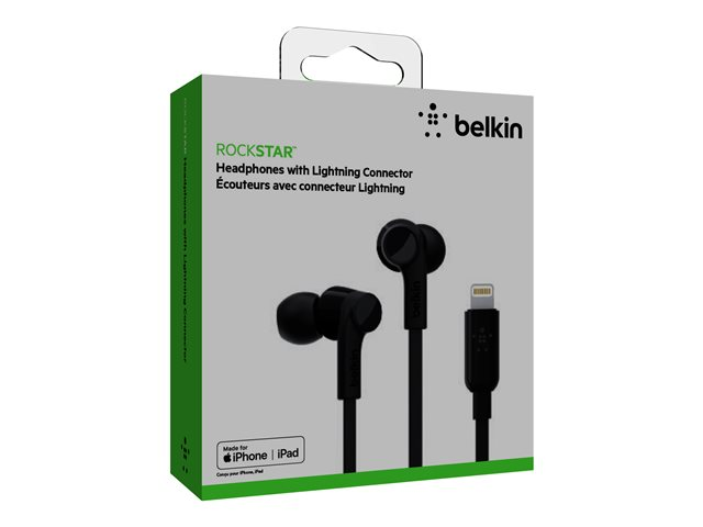 Belkin ROCKSTAR - Ørepropper med mikrofon - i øret - kablet - Lightning - lydisolerende - svart - for Apple 10.5-inch iPad Pro; iPad mini 4; iPhone 7, 7 Plus, 8, 8 Plus, X, XR, XS, XS Max G3H0001BTBLK