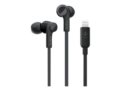 Belkin ROCKSTAR - Ørepropper med mikrofon - i øret - kablet - Lightning - lydisolerende - svart - for Apple 10.5-inch iPad Pro; iPad mini 4; iPhone 7, 7 Plus, 8, 8 Plus, X, XR, XS, XS Max