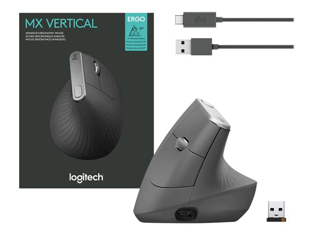 MX Vertical er en avansert ergonomisk mus som kombinerer vitenskapsdrevet design med den imponerende ytelsen til Logitechs MX-serie. Gå lenger med en mus designet for å redusere muskelbelastning, redusere håndleddtrykket og forbedre stillingen.