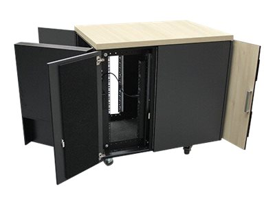 Specialized enclosures with integrated cooling, noise dampening, and power distribution for server and network applications in office environments.
