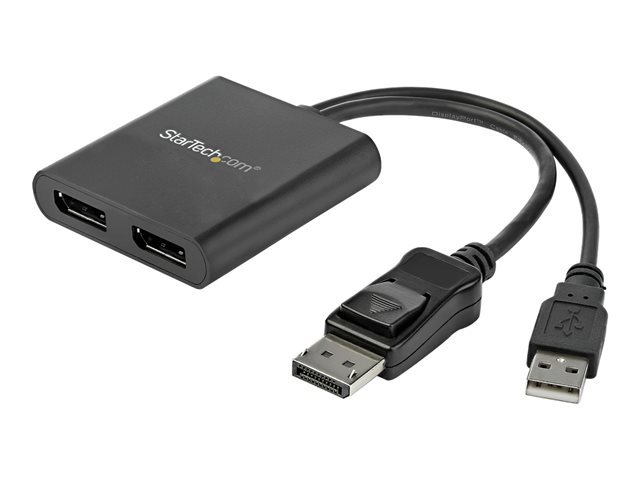 This MST hub lets you connect two monitors to your DisplayPort (DP) 1.2 equipped Windows laptop or desktop. It's USB powered, so the only thing you'll need to operate the hub is your computer.