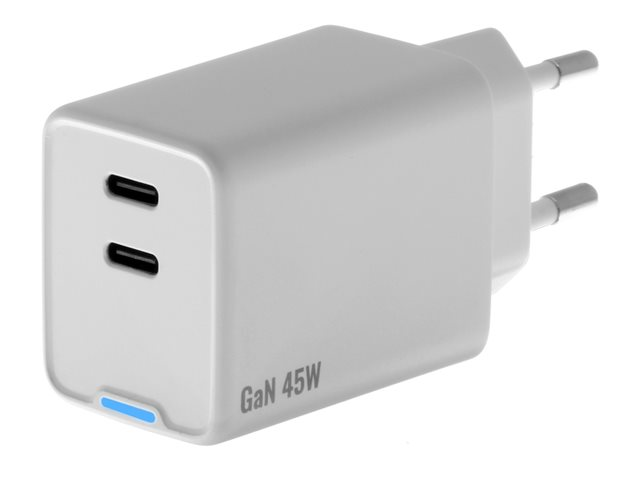Insmat - Strømadapter - 45 watt - 3 A - PD/PPS - 2 utgangskontakter (24 pin USB-C)