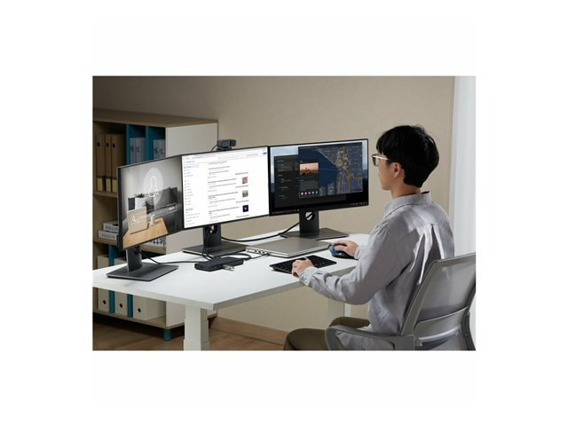 The Kensington SD4842P docking station is a comprehensive solution for professionals looking to enhance their workstation's connectivity and productivity. With a variety of ports including USB-A 3.2 Gen 2, USB-C 3.2 Gen 2 with Power Delivery, HDMI, and DisplayPort, it caters to all your connection needs. The docking station supports high-resolution displays up to 8K on a single screen or triple displays at 1080p, making it suitable for detailed projects and immersive presentations. Security is prioritized with both Kensington nano and standard security slots, providing peace of mind in any work environment. Additionally, features like USB-C Alt Mode and up to 10Gbps data transfer rates ensure that your workflow remains uninterrupted, making it an ideal choice for fast-paced professional settings.